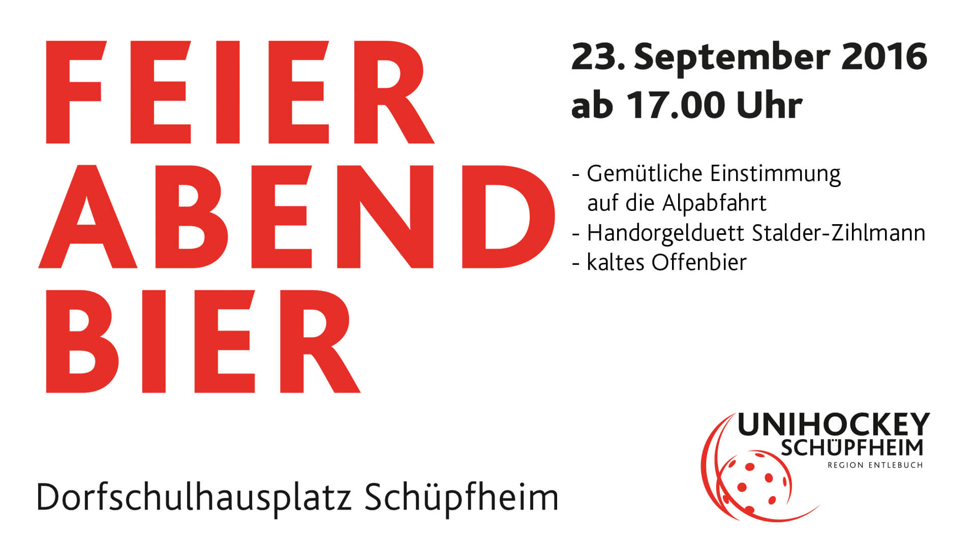 Im Vorfeld der Alpabfahrt 2016 veranstaltet Unihockey Schüpfheim zur Einstimmung auch dieses Jahr wieder das "Feierabendbier".