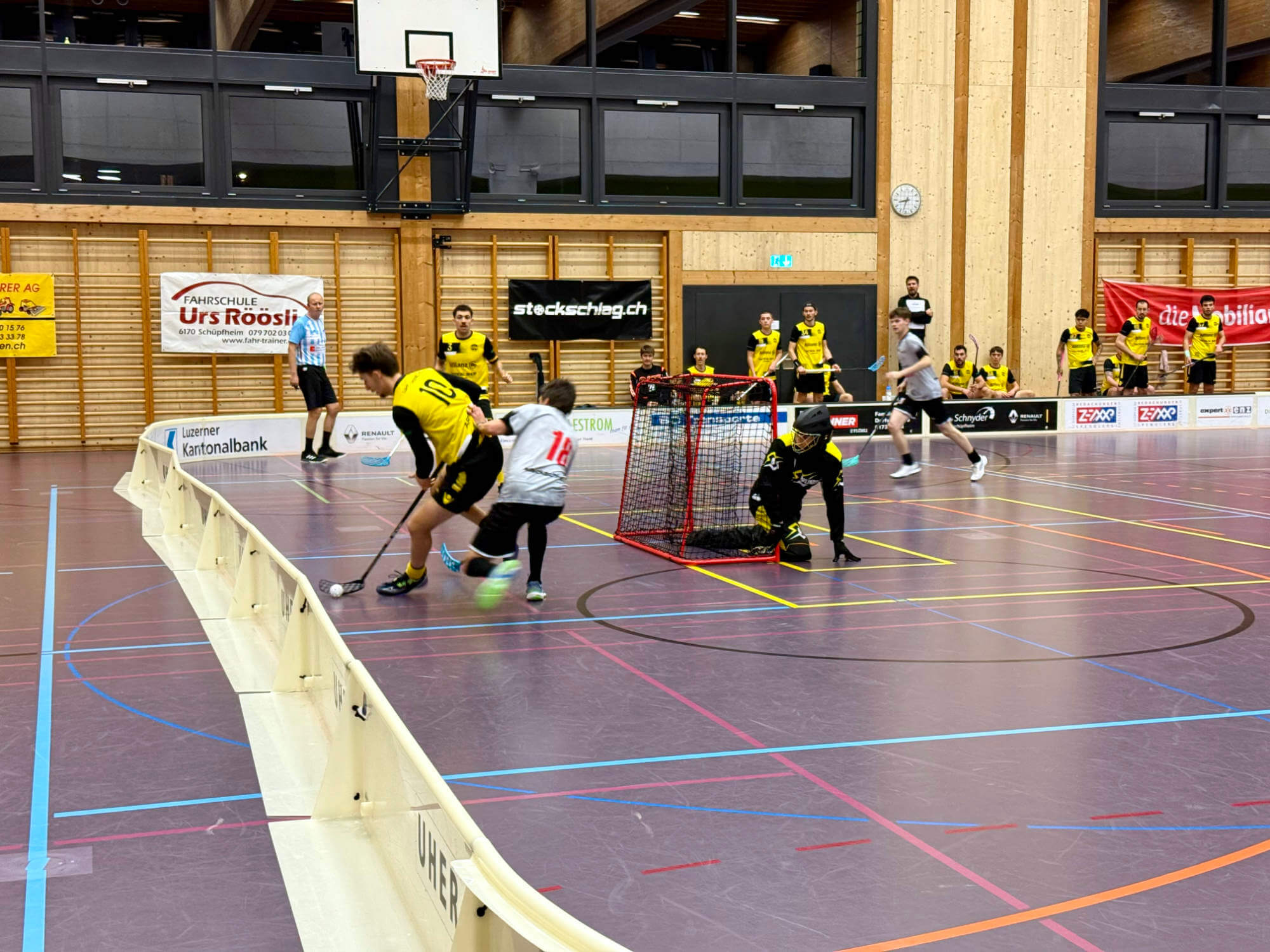 Das Trainerduo um Benjamin Vogel und Patrick Graf gab den Biosphären-Jungs vor allem zwei Aufgaben ins Spiel mit. Zum einen sollen die Gäste von Beginn weg stark unter Druck gesetzt werden. Zum anderen waren die Unparteiischen nicht gerade für Diskussionsfreudigkeit bekannt. Während zweite Aufgabe im ersten Drittel sehr gut umgesetzt werden konnte, blieb bei ersterer noch Luft nach oben. Obwohl die Genfer durch das frühe Pressing vor Probleme gestellt wurden, gelang es ihnen immer wieder Konter-Situationen zu kreieren. Schüpfheim hatte aber die Kontrolle über das Spiel und lief den Ball gut laufen. Nach gut sechs Minuten Spielzeit eröffneten dann die Hausherren dann auch das Score. Auf Vorarbeit von Joel Lappert netzte Marcel Zihlmann mit einem wunderbar platzierten Schuss zur Führung ein. Da beide Teams ihre Chancen bis zur Pause ungenutzt liessen, blieb es bei der knappen Führung. Trotz zwei Strafen blieben die Entlebucher schadlos.