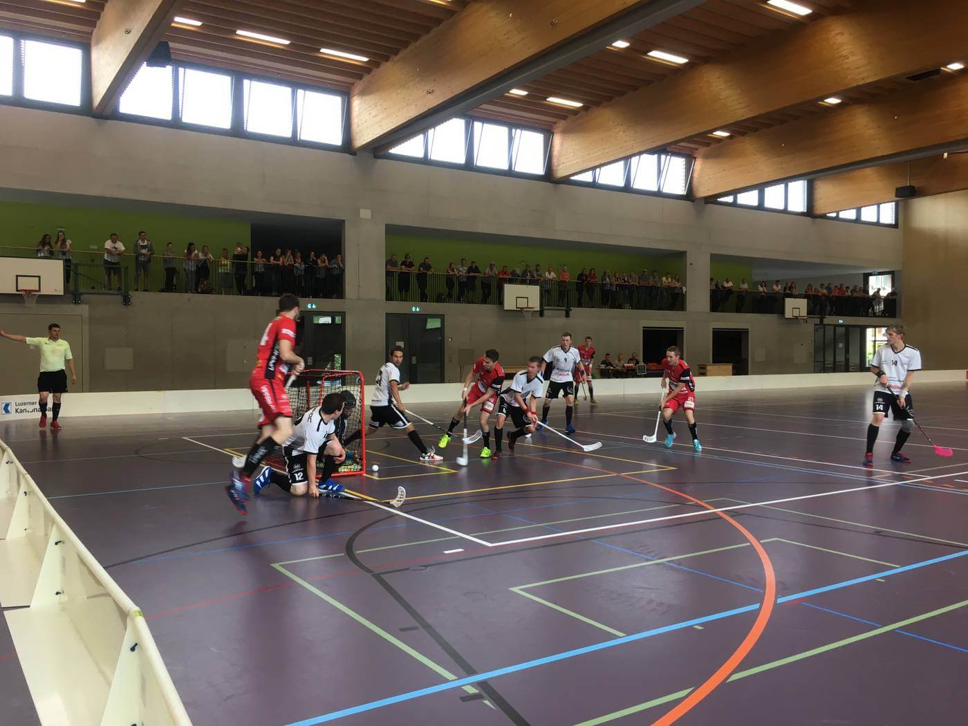 Das Trainerduo Patrick Graf und Michael Roos stimmte die Mannschaft perfekt auf die Partie ein. Rund drei Minuten nach Anpfiff zappelte der Ball erstmals im Netz. Ging der Favorit bereits in Führung? Im Gegenteil: Stefan Schnider schoss nach einem Gegenangriff kurz nach der Mittellinie ab und überraschte den gegnerischen Torhüter. So hiess es nach 180 Sekunden bereits 1:0 für die Einheimischen. Schüpfheim war von Beginn an konzentriert und war jeweils in den Zweikämpfen zur Stelle. Auf beiden Seiten gab es sehenswerte Möglichkeiten, vorerst blieb es aber beim 1:0 für die Entlebucher. Nach einer schönen Kombination und einem Direktabschluss landete der gelöcherte Ball erstmals im Tor der Entlebucher. Nach einem Bodenspiel musste erstmal ein Protagonist zum ersten Mal in diesem Spiel in die Kühlbox und es traf leider einen Entlebucher. Das Powerplay des Erstligisten funktionierte gut und kurz vor der Pause konnte der Gegner auf 1:2 erhöhen. Mit dem knappen Rückstand ging es in den Pausentee.