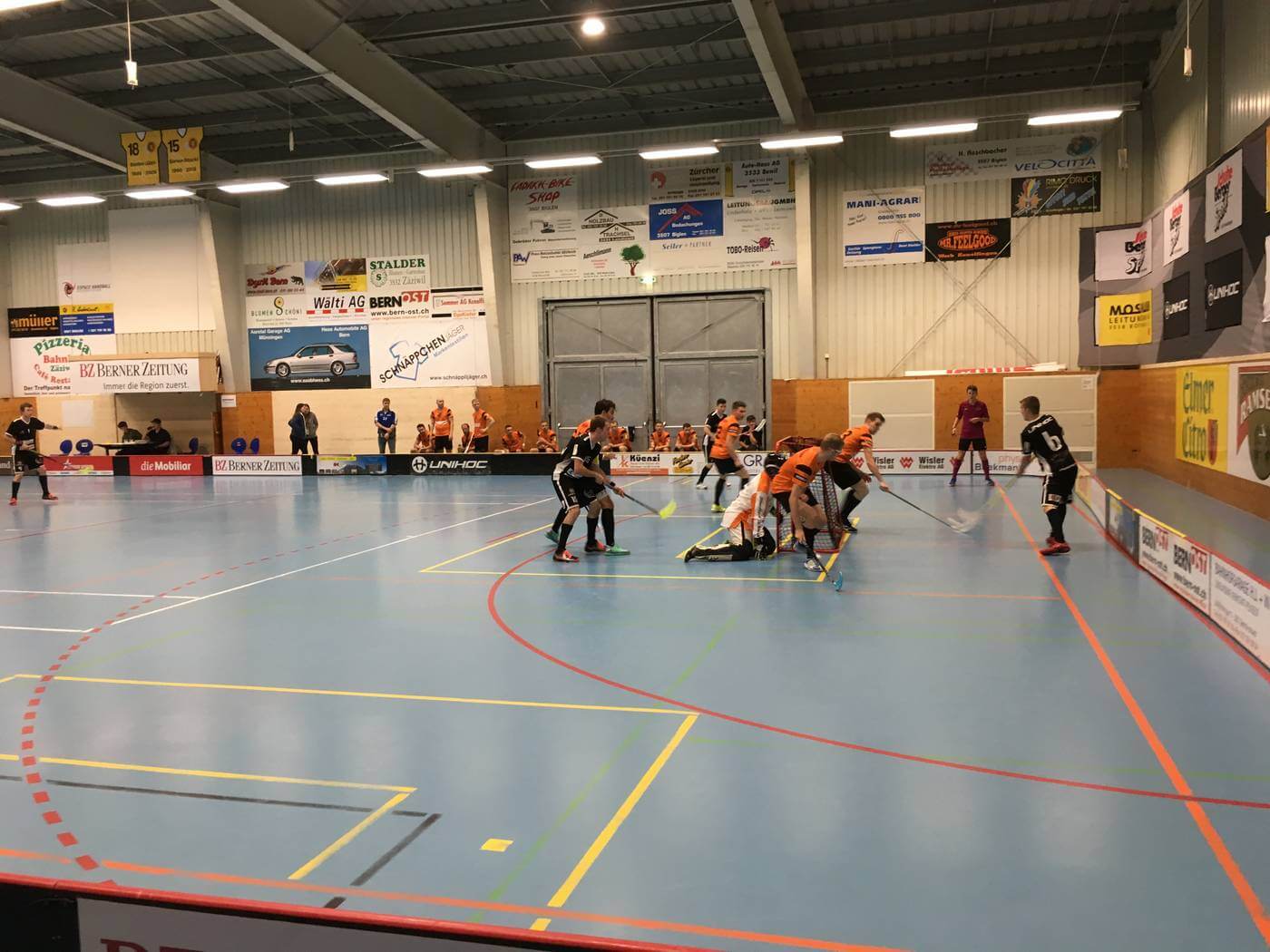 Um 14:30 Uhr wurde die Partie um die Spitze von den Unparteiischen angepfiffen und der Ball rollte in der Espace-Arena. Die erste Mannschaft trat diese Partie mit drei Sturmlinien und zwei Verteidigerlinien an. Die ersten zehn Minuten versprachen, was auf dem Papier stand und es war ein spannender Start in das Spitzenspiel. Beide Seiten waren abgeklärt und versuchen einzelne Nadelstiche nach vorne zu setzen. Der Gegner aus Moosseedorf konnte eine Gelegenheit davon nützen. Der Ball konnte vor dem eigenen Slot nicht wunschgemäss geklärt werden und so stand ein Gegner goldrichtig, welcher nur noch einnetzen musste. Beide Mannschaften spielten offensiv und es gab einen richtigen Schlagabtausch. Mehrmals ertönte auf beiden Seiten das Aluminium, jedoch blieb es bei der knappen 0:1 Führung für den aktuellen Leader.