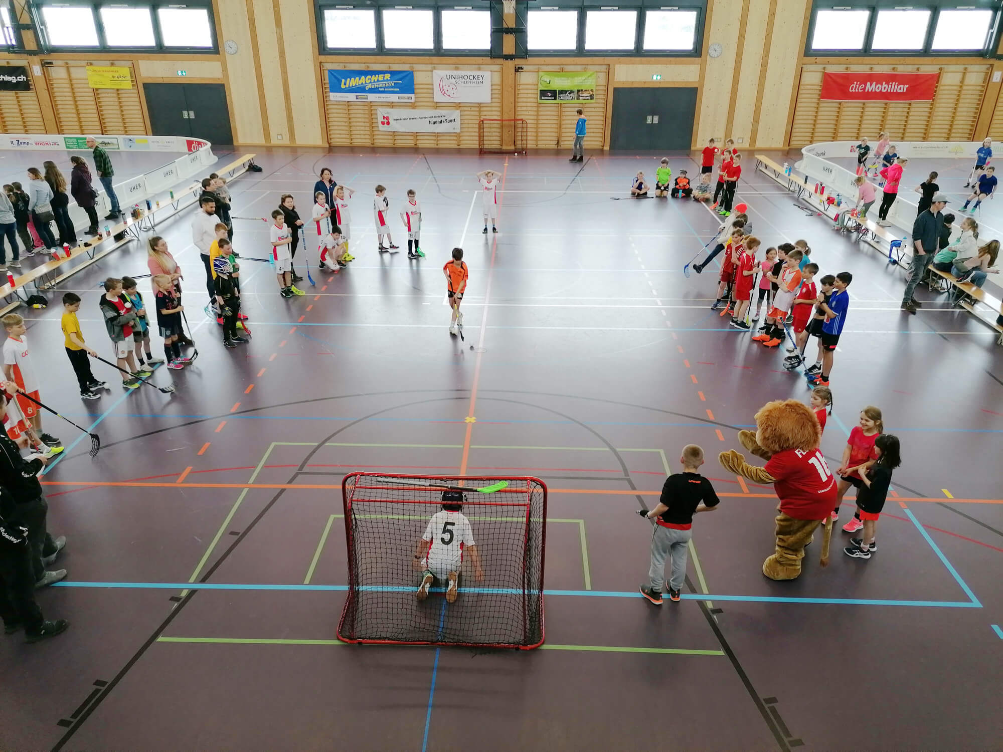 Nach einem zweijährigen Unterbruch konnte endlich wieder ein Unihockey-Schülertunier durchgeführt werden. Die Freude über die Durchführung war anhand der rekordverdächtig hohen Teilnehmerzahl ersichtlich. Pünktlich um 8.00 Uhr wurden die ersten Spielrunden des Turniers in der Dreifachtunhalle Moosmättili in Schüpfheim angepfiffen. Als erstes standen die Gruppenspiele in den Kategorien Unterstufe auf dem Spielplan. Während die einen ihr Können auf den beiden Spielfeldern bewiesen, beschäftigten sich die anderen mit dem Aufwärmen oder Warmhalten in der Turnhallenmitte, machten Taktikbesprechungen oder fieberten am Spielfeldrand bei den laufenden Spielen lautstark mit. Auch Floorby, das Vereinsmaskottchen von Unihockey Schüpfheim – Region Entlebuch, bereitete den Kindern viel Freude.