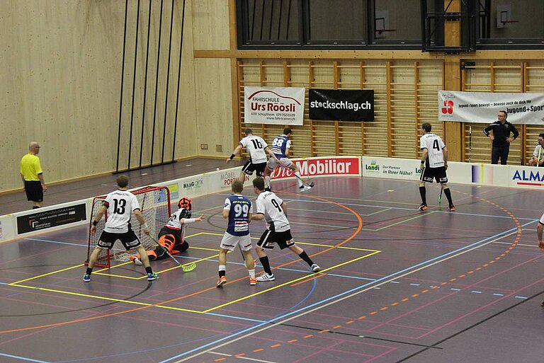 Die Schüpfheimer starteten konzentriert und motiviert. Bereits in der zweiten Minute konnte Manuel Arnet mit einem satten Abschluss unter die Latte die Führung für Schüpfheim bewerkstelligen. Leider gelang es nicht lange den Vorsprung zu bewahren. Deitingen glich mit einem heimtückischen Weitschuss bereits in der fünften Minute wieder aus. Die Entlebucher liessen sich nicht entmutigen und konnten die ausgesprochene Zweiminutenstrafe gegen Hansjörg Vogel zur Spielmitte bewältigen. Die Einheimischen hielten gut gegen den offensiv sehr präsenten Gegner stand und kamen immer wieder auch zu eigenen guten Chancen. Bedauerlicherweise ohne das nötige Abschlussglück und keinem weiteren Torerfolg. In der 15. Minute gab es nach einem Notbremsefoul Deitingens die Chance zur erneuten Führung durch einen Penalty. Unglücklicherweise konnten dieser, wie auch die anschliessende Überzahlsituation nicht zum Vorteil der Entlebucher ausgewertet werden. Ein wenig enttäuscht über die verpassten Möglichkeiten gingen die Herren in die erste Pause, um neue Energie zu tanken.